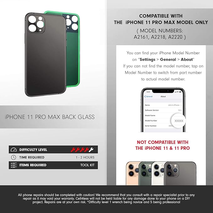 Amazon Com Cell4less Back Glass Replacement Kit For The Iphone 11 Pro Max Rear Back Glass W Removal Tool Gold